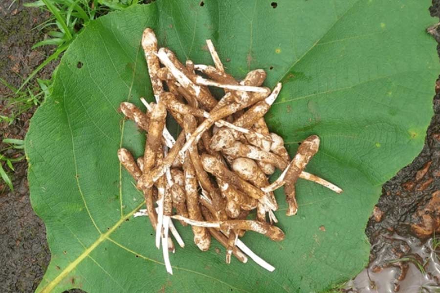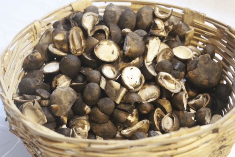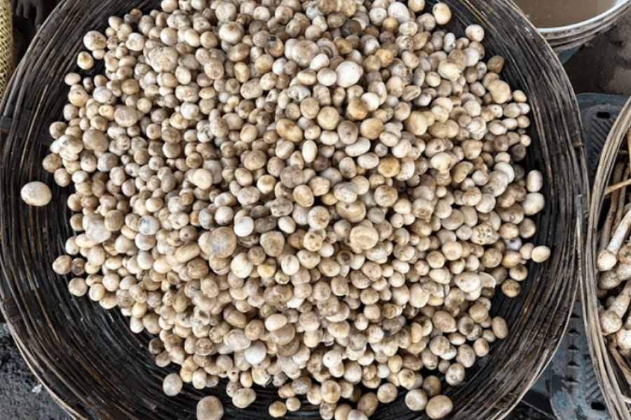 Similar to Durga Chatu, Asina Chattu is a wild mushroom variety found in Odisha during the monsoon season, particularly from July to September. With a firm texture and a slightly sweet, nutty flavour, it is commonly cooked in mustard and dried mango Ambula-based curries that are locally called Chatu Besara. It forms an important part of seasonal Odia cuisine. These mushrooms are typically harvested from forests and not commercially cultivated, so they are only sold in local markets.