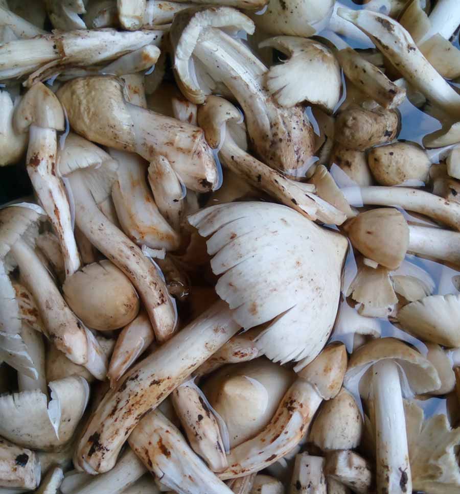 Ant-hill mushrooms, or Termitomyces, grow on termite mounds during the first heavy monsoon rains, typically June to July. These mushrooms are known for their long stems, meaty texture, and mild umami flavour. In local cuisines of Goa and Maharashtra, they are used in spicy curries. They are difficult to cultivate and are foraged by hand, which limits availability to local markets.
