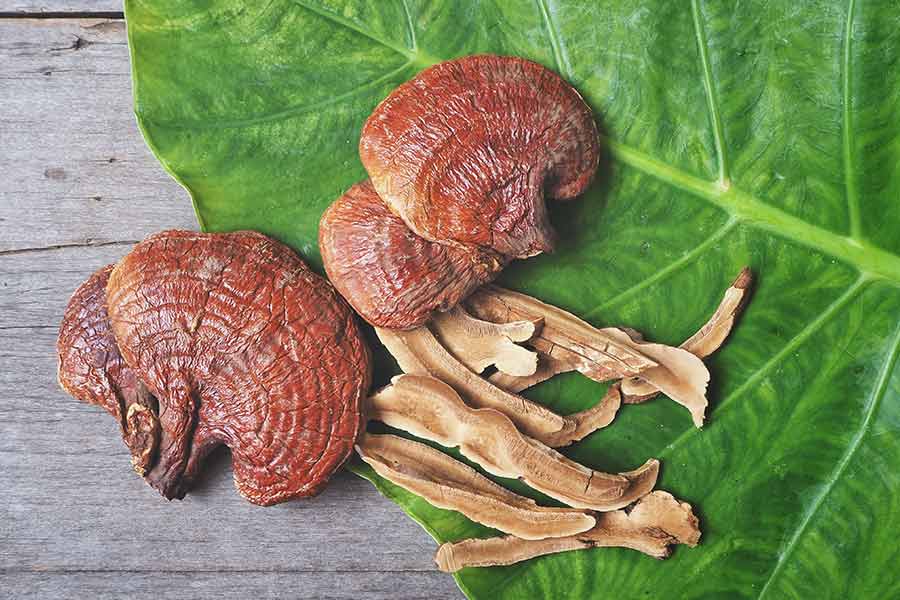 Lingzhi, also known as Ganoderma lucidum or reishi, grows in the forests of northeast India during late summer and early autumn. Known for its medicinal properties, it is not used in cooking but steeped in water to make herbal tea or consumed as a powdered supplement. It has a woody texture and a slightly bitter taste. Lingzhi mushrooms are widely available online in dried or powdered form through various health and wellness platforms.