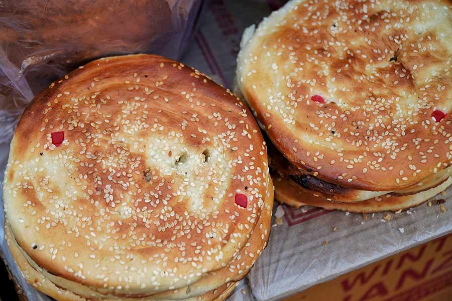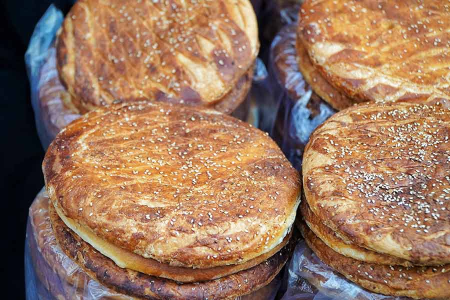 Beside it sits the plain bakarkhani, thicker and more restrained in sweetness. It is bigger in size and comes topped with sesame seeds. This bread is usually picked up to relish with a spice-heavy nihari or even a rezala. The smaller variants of bakarkhani are perfect to dunk in thick and sugary milk tea.