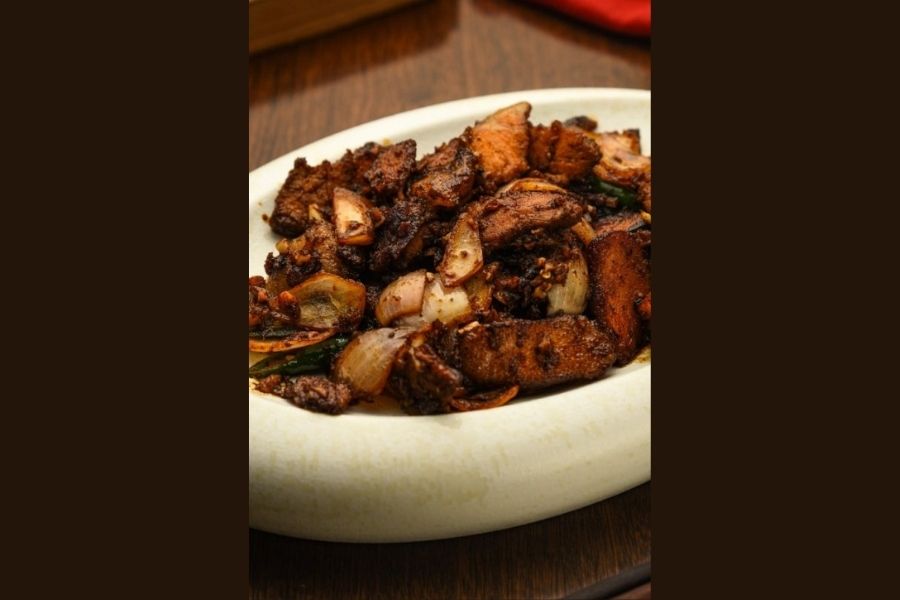 At Popo’s, Smoked Chilli Pork tells a story of Himalayan tradition. Inspired by age-old smoking techniques from Tibet and Ladakh, the dish features succulent pork sourced from Dimapur, Nagaland, slow-smoked for depth, then tossed with chillies for a bold, warming flavour packed with authenticity.