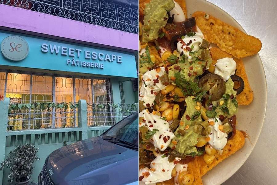 A dreamy pastel-hued café on Karaya Road, Sweet Escape is where art meets dessert. Known for its “paint-your-own” experiences, guests can decorate cakes, cookies, or macarons while sipping on creative brews like Black Sesame Latte, Blue Matcha, or Kesar Chai. The food menu features comforting bites such as Podi Grilled Cheese and nachos, while the dessert section is a treat for gluten-free dessert lovers. It’s the perfect spot for a creative afternoon or a chill catch-up with friends.