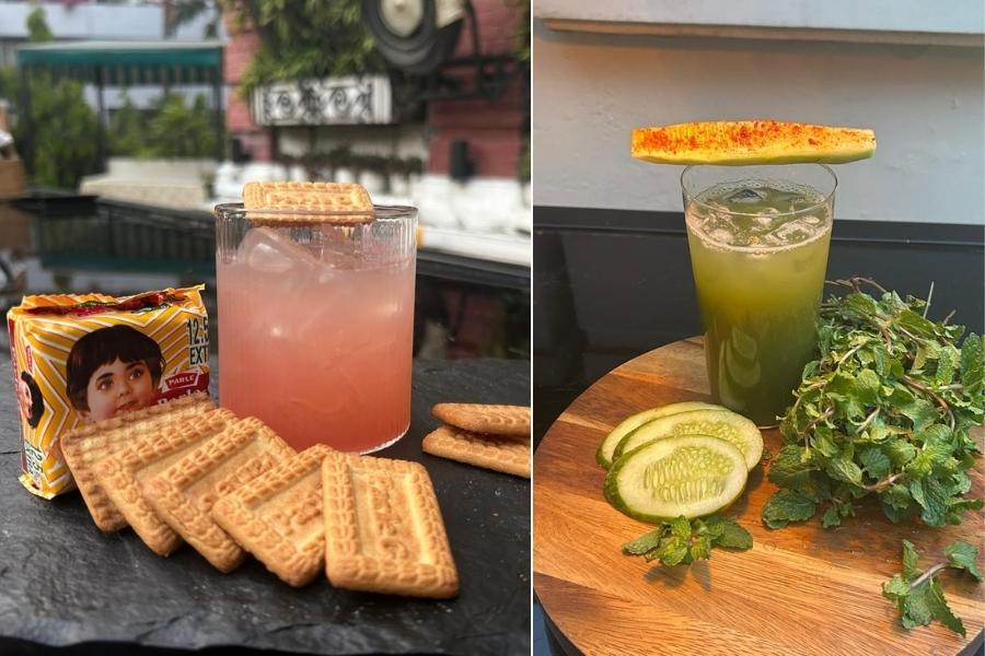 We’ve all had Parle-G biscuits growing up. Dipping it in tea or milk always made it better, but did you ever imagine a drink could be made with it? If not, then you have to head over to The Astor and order this drink called (left) Memory Lane, which is made with Parle-G infused whisky, Martini Rosso and peanut syrup. Garnished with Parle-G, this unique drink comes for Rs 550. For a mocktail, try the (right) Summer Serenity, made with cucumber juice mint, gondhoraj lemon and agave syrup. This refreshing mocktail costs Rs 325.