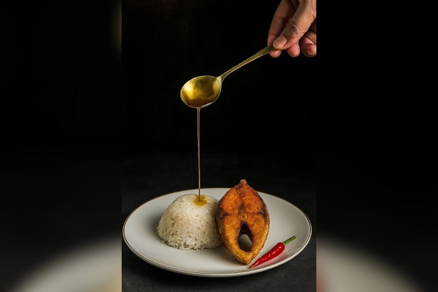 This is the kind of friendship that doesn’t need loud conversations. Just a dollop of hilsa oil on steaming rice and it seems like it was made for each other. Gorom bhaat is the quiet nurturer, while ilish-er tel carries years of memory in a few golden drops. They don’t need the spotlight. Their connection is deep, old and full of flavour.