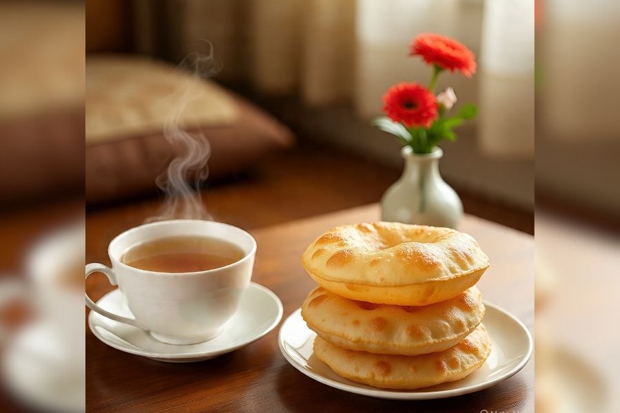 You wouldn’t expect these two to be best friends, but here they are forever bonded. Chaa brings warmth and conversation, while cold luchi, leftover from breakfast, or the night before, offers quiet replenishment. They are poles apart, but come together to make something nostalgic and comfortable. Not flashy, not perfect but still a strong bond.
