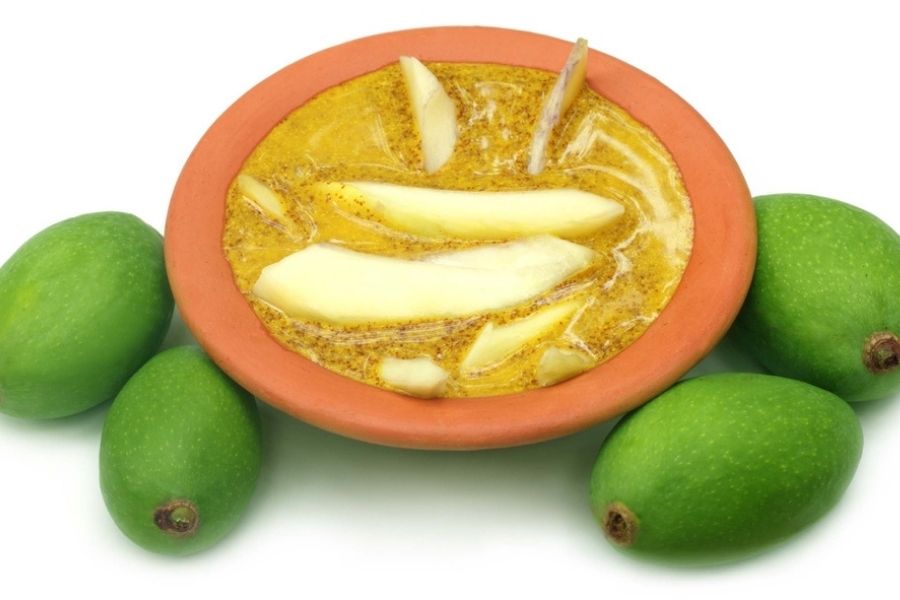 Most people are familiar with kasundi — the sharp mustard sauce from Bengal that almost tastes like wasabi. During summers, this mildly fermented mustard sauce is made with slivers of green mango to give you a sharp, piquant, smoky mango-mustard sauce. Use it as a pickle with some ghee-rice and sides, as a dip for your fried snacks, in your salad or sandwich dressing, or even in marinades. If you want to make it at home, find a recipe here