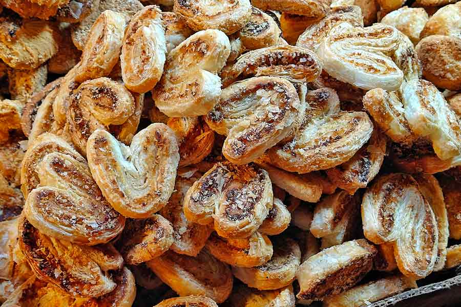 Often labelled as coconut cookies, these are actually macaroons — slightly firm on the outside but soft, chewy and sweet inside. Each bite releases a burst of coconut flavour that feels both homely and festive, making them one of the most loved items across the market’s bakeries.