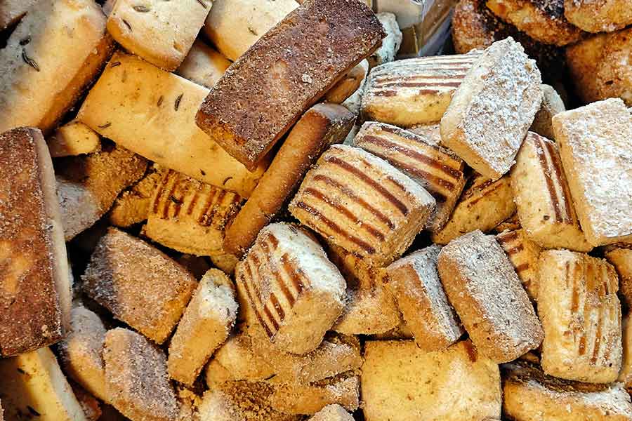 The jeera biscuit is a Kolkata staple: shortbread-like, mildly salty and perfect for evening tea. The MP butter cookies, however, are a piece of history. Traditionally made from rich butter, once sourced from Madhya Pradesh, these tiny cookies are soft, buttery and disappear far too fast.