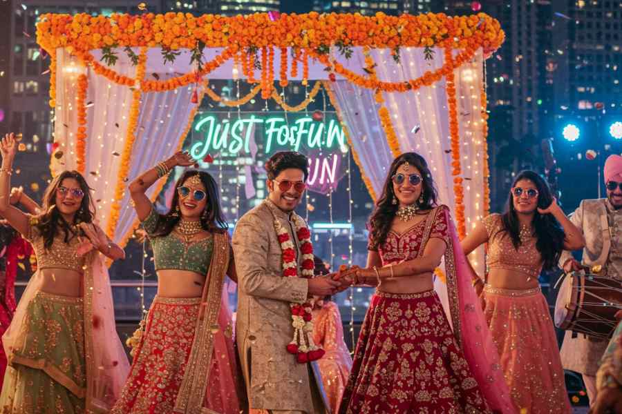 It’s a wedding, but without the commitment. The fake wedding trend is essentially a themed party that recreates the grandeur of a big fat Indian wedding minus the pressure of rituals and intrusive relatives. The concept has struck a chord with Gen Z and young professionals who love the aesthetic, drama and collective joy of weddings, but prefer to skip the emotional and social baggage. In Kolkata, venues such as Tantra and The LaLiT Great Eastern Kolkata have hosted such high-energy soirees.