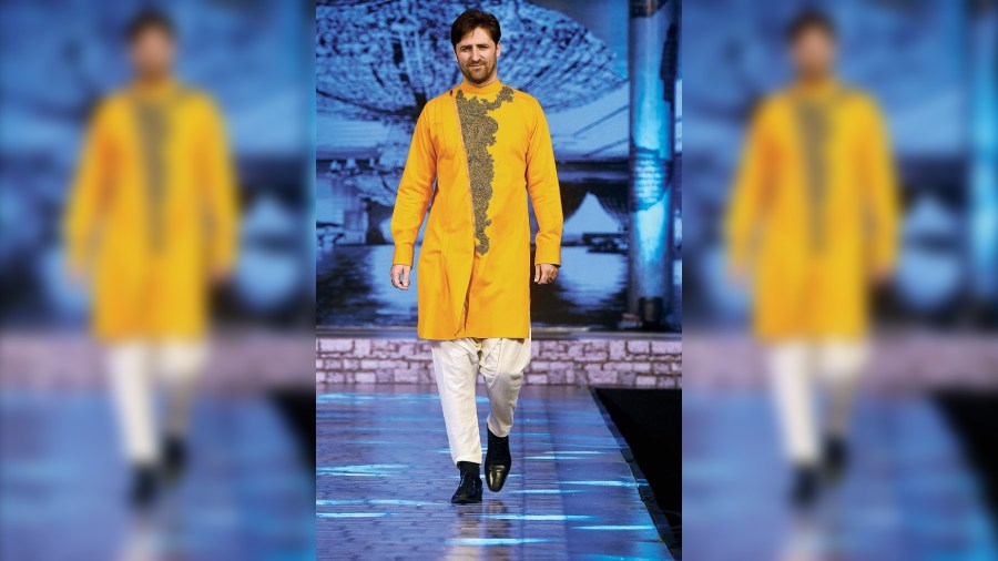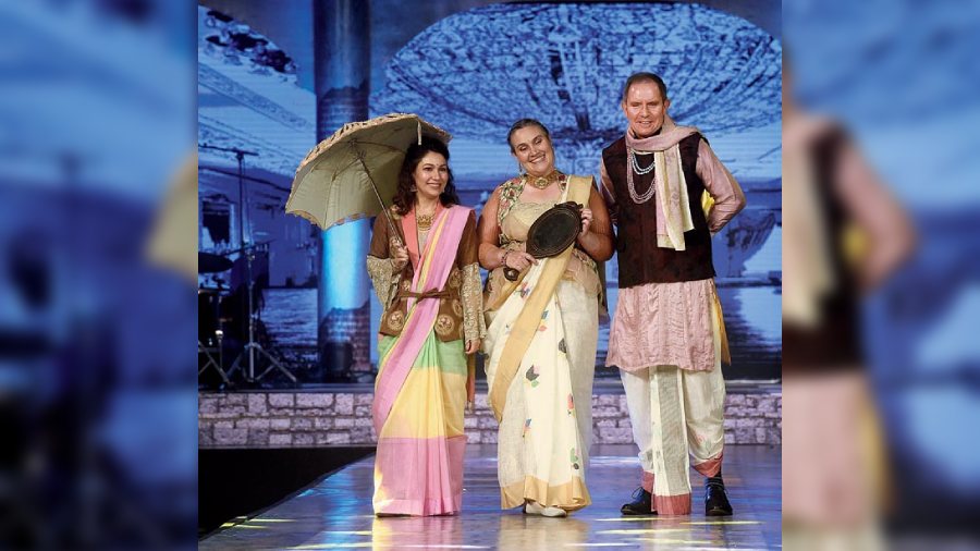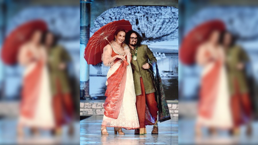 The show is about celebrating Bengal and our love for Bengal, it’s tradition, weaves, craft, music, culture and food. I am really thankful to have the consuls and expats from different parts of the world walk the ramp in our Bengal-inspired collection. This is the fourth season and over the years the event has gotten bigger and better. This year’s theme was to build a bridge between the old-world Bengali charm and the new-age Bangaliana. Since we were doing it on a big scale after a long time we had such a lavish set-up. Some teenagers walked the ramp in the second sequence, where we tried to show that the next generation’s style sensibility is also a part of the neo-Bengal styles. We wanted to bring people from different origins on the ramp. We all love Bengal but how Bengal is celebrated globally and loved by people from different parts of the world was the core idea behind this show — Abhishek Dutta