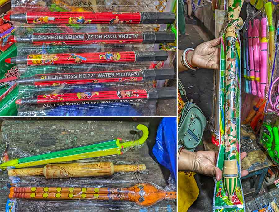 Topping the Holi essentials list, after gulal, are the pichkiris, or pichkaris. This festival of colours, you don’t need to settle for the boring and basic ones. At north Kolkata’s Hatibagan, one can get hold of some quirky and colourful pichkiris. From the classic pencil-shaped to umbrella-shaped ones — they are too tempting to resist buying!