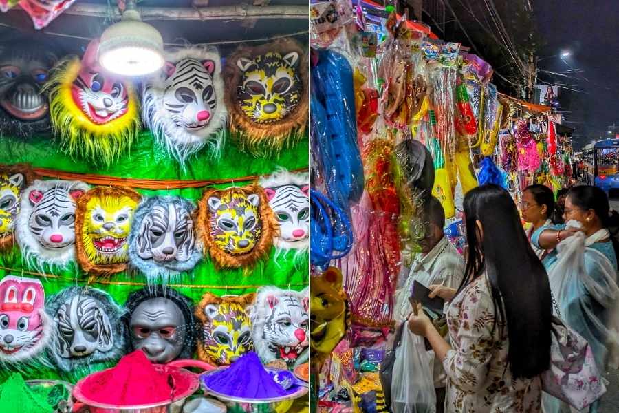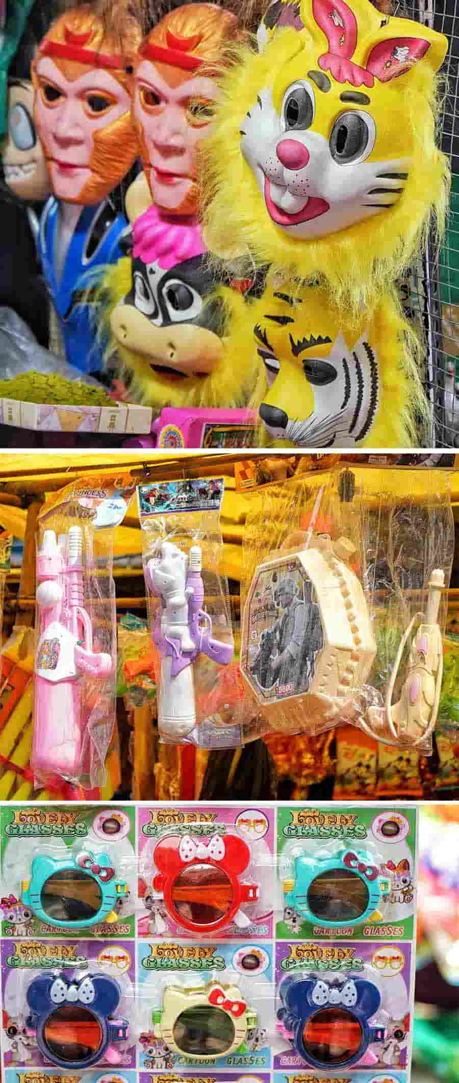 Jadubabur Bazar also has an ample range of masks, pichkiris and quirky sunglasses for children.