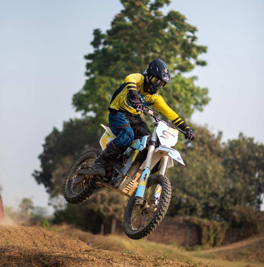 Most electric dirt bikers would call it quits after breaking both their arms. But Sayontan Seth preferred staying the course.