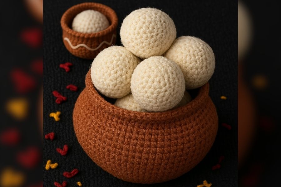 Kolkata’s rosogolla turned into balls of yarn looks delicious!