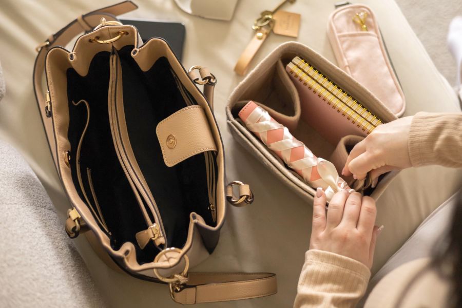 Use small pouches to store items like keys, makeup and pens. This prevents scratches, spills and stains inside the bag.