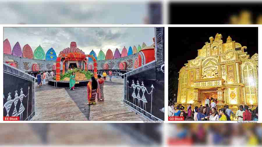 Chief minister Mamata Banerjee inaugurates the FD Block puja, becoming the first in Salt Lake to be inaugurated by her. It has been selected for the Red Road carnival.