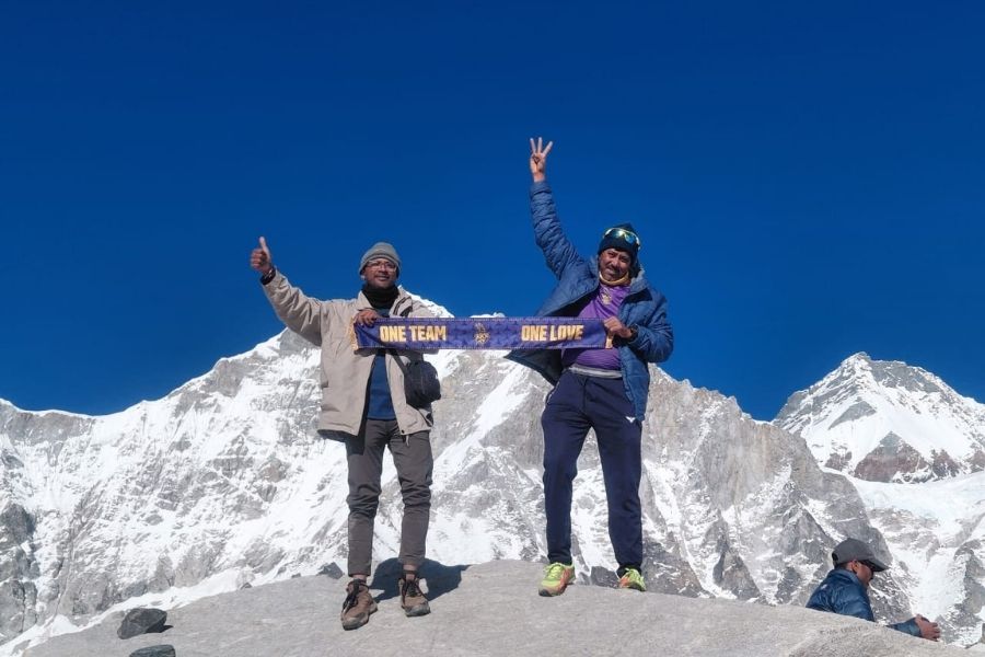 “The KKR flag is connected to my blood. Wherever I go, the KKR flag is always with me,” he said in Bengali, his voice brimming with pride. His lifelong passions — cricket, climbing, and singing — came together in this remarkable journey of endurance and emotion.