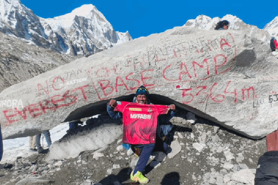 Still, when the team reached Everest Viewpoint, the moment took his breath away. “The sight of Everest for the first time felt like a dream,” he said. On 19 October, he finally stood at Everest Base Camp, unfurling both the KKR and Indian flags against the snow-clad peaks — a moment that perfectly captured the unity of fandom and patriotism. He also carried with him a Trinbago Knight Riders jersey, honouring the team that recently clinched their fifth Caribbean Premier League title, a victory that added yet another feather to the global Knight Riders legacy.