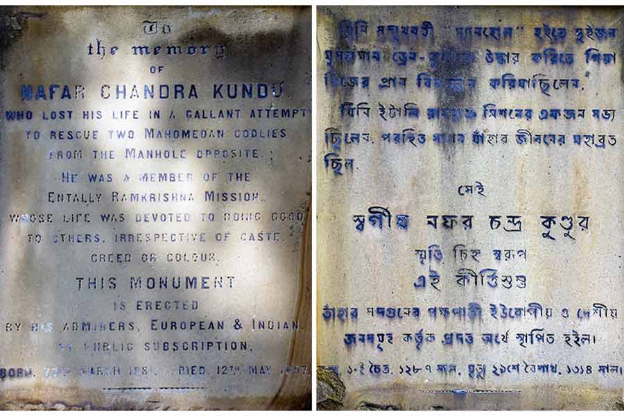 On February 2 this year, three labourers died in a manhole accident at Kolkata Leather Complex in Bantala. No wonder the tragic accident made it to the headlines of all major dallies. But unknown to many, the Kolkata itself has a century-old memorial {in picture at Chakrabaria Road (South)} dedicated to a common man who died while rescuing two manhole labourers.