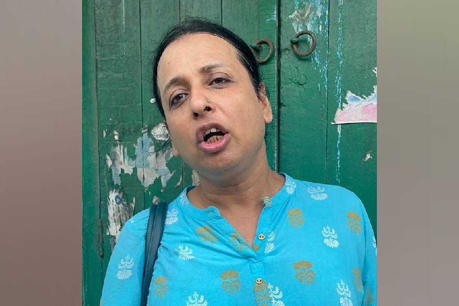 Sampa Chowdhury, 51, of Shibpur constituency, cast her vote at booth 72 of Chandi Vidyapith Primary School at 7.30am on Wednesday. The first voter at her booth, Chowdhury, had to wait for nearly 30 minutes as polling was delayed due to repeated EVM malfunctions.
