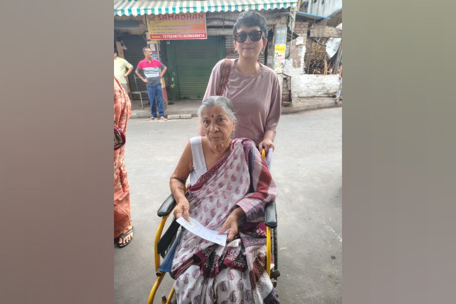 Sraboni Sengupta, 71, a voter of Netaji Nagar who participates in every election, arrived at her polling booth in a wheelchair this year due to difficulty walking.