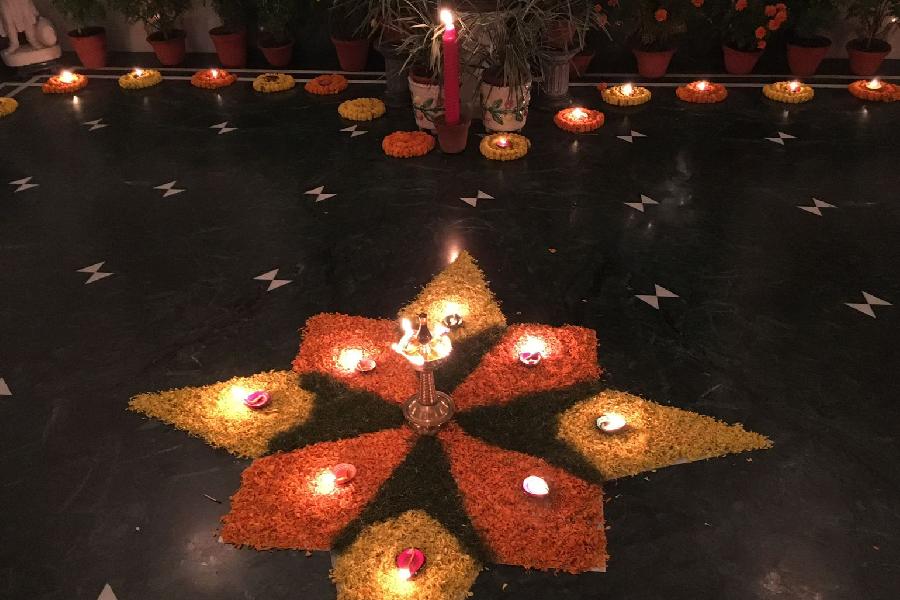 “Earthen diyas would be bought and cotton wicks rolled. There had to be two diyas at every doorway to welcome the goddess. We would also line them along the parapet of our terrace where the children would later light phuljharis, anars, chakris and laris,” she said, describing how she sets up the festive mood at her Park Street residence.