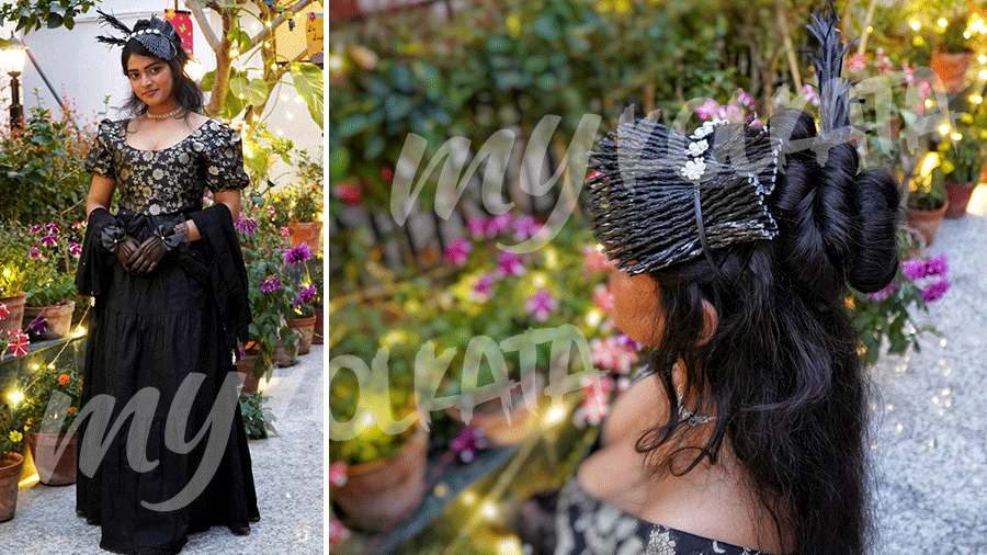 “I did not want the outfit to be too gaudy, outlandish or exaggerated like a costume. I took quick visual references from Pinterest. My styling also drew inspiration from Lady Danbury, Madame Delacroix’s theatrical elegance and Lady Araminta’s bold use of black,” Ayushi said.