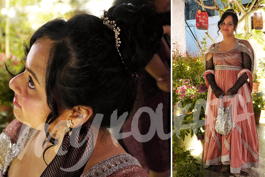 Loose tresses and a stone-studded tiara balanced her look. “I wanted my make-up to be as Bridgerton-ish as possible. So, I opted for pink-ish hues,” added Shovita.