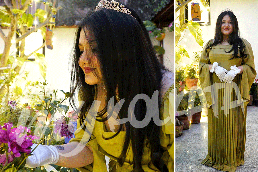 Ayushi Mandal, a 19-year-old student of Technology Campus, thrifted separate pieces to create from scratch an outfit that helped her channel the Regency era’s elegance and elan.