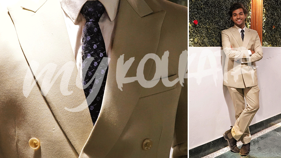 When it came to choosing his outfit for the Bridgerton ball, Sudipta decided to go with a double-breasted Raymond suit in his favourite colour beige.