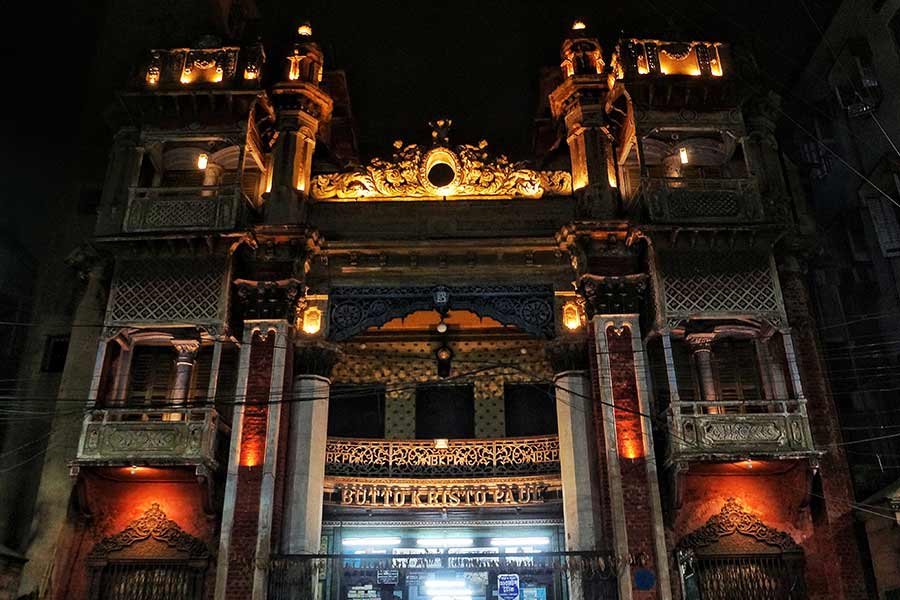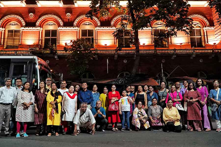Subir Saha, a former railway personnel, was part of the tour. “I was in Azerbaijan a few days back, and seeing how they maintained their culture was fantastic. Seeing a small semblance of that in the form of these illuminated buildings makes me love my city even more,” he said. Of the several spots visited, he said the Royal Insurance building (above) was his favourite.