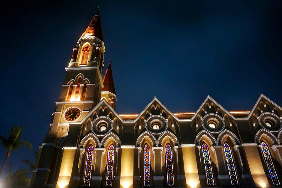 One of Kolkata’s most prominent Anglican churches, St James’ Church, often called Jora Girja for its twin spires, was also on the list of spots visited. The iconic structure, built in 1864 with a Gothic Revival Style, was a sight to behold in the night.