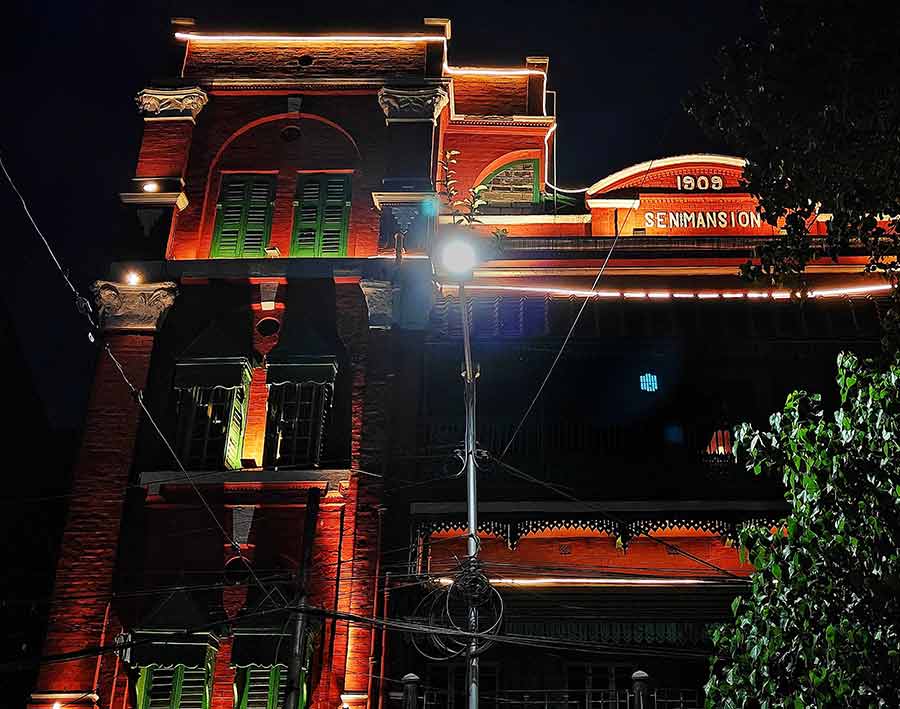 The Sen Mansion was another iconic illuminated building on the list. The Sens of Sealdah are popularly known for maintaining the Shree Radha Krishna Mandir near Amherst street. The house, built in 1909, still stands tall and strong against the winds of time and the illuminations only adds to its beauty.