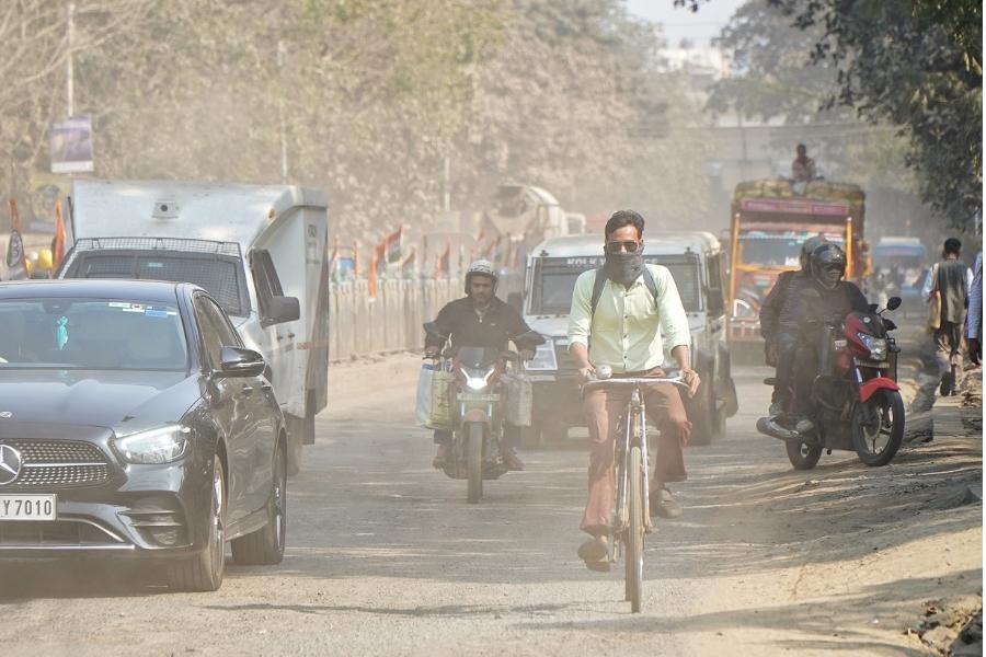 Biswanath Das, a hawker at Taratala, said even walking has become difficult. “I spend most of the day here and it becomes difficult to even breathe. They sprinkle water but after it dries up, it is again dusty. All of winter, it has been like this,” he said.