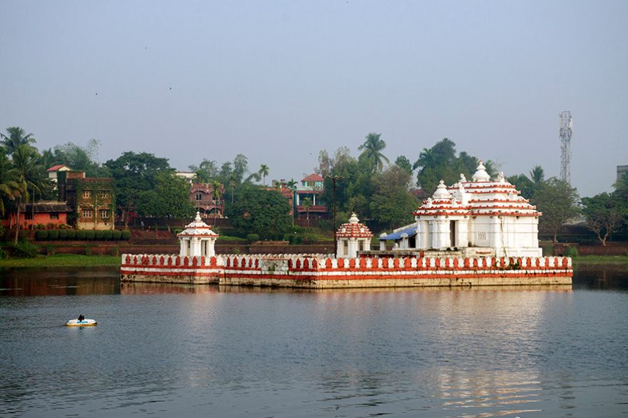 Brahma Temple: According to legend, Shiva created the Bindusagar Sarovar (lake) with his trident, so that Parvati could quench her thirst. Historical records suggest the lake was dug out in the seventh or eighth century, and is as old as the earliest temples of the city. The tank is lined with laterite stones and has steps on all four sides leading to the water. At the centre of the lake stands a Brahma Temple, also known as Jagati Temple, which is only accessible during the Chandan Yatra festival in late April or early May. During the celebrations, idols from the nearby Lingaraj temple are ferried to the Brahma Temple in decorative boats.