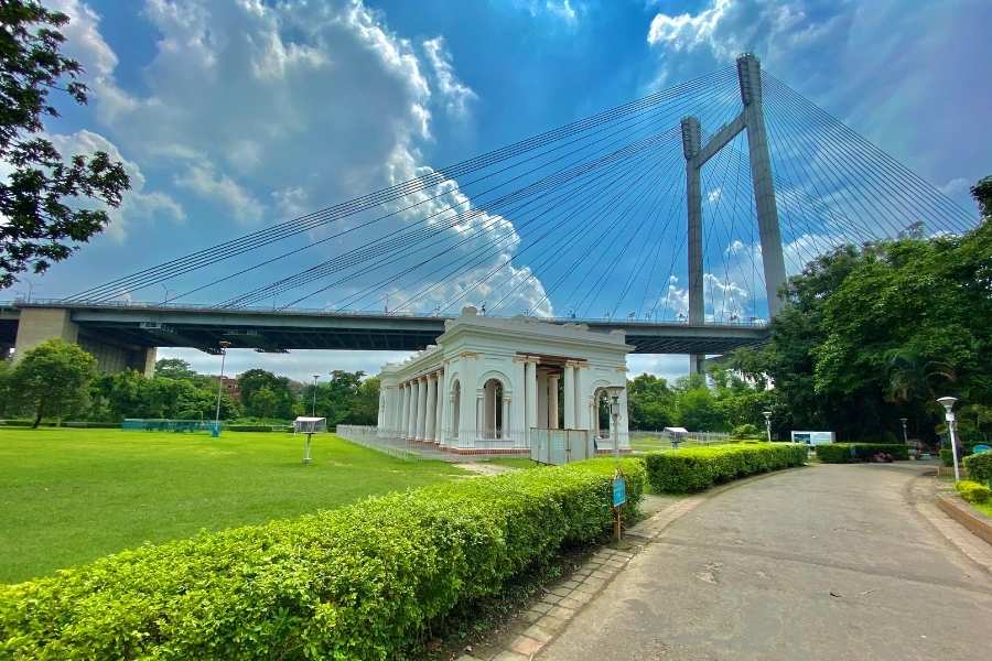 Set along the Hooghly river, Prinsep Ghat combines colonial architecture with sweeping river views. The marble pavilion, steps leading to the water and the backdrop of the Vidyasagar Setu create frames that are unmistakably Kolkata.