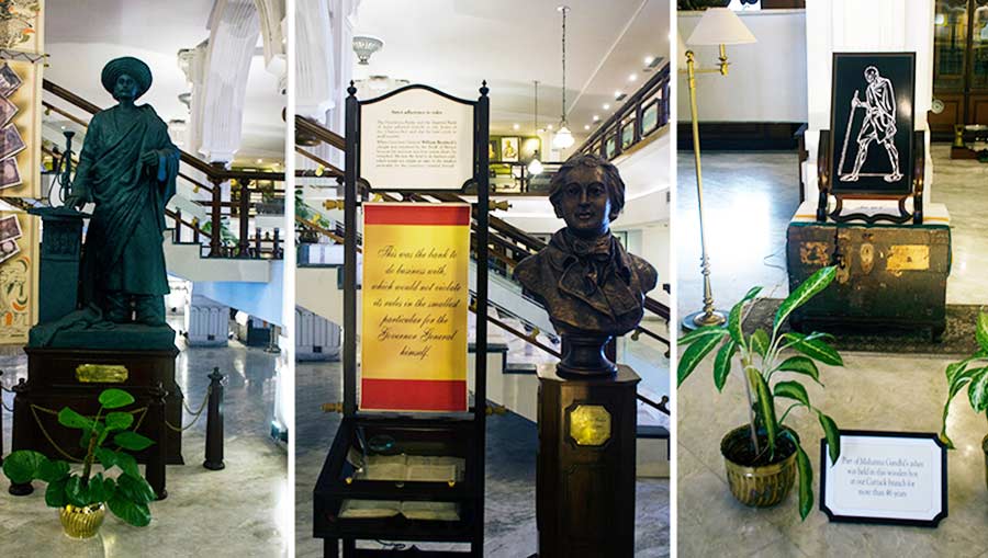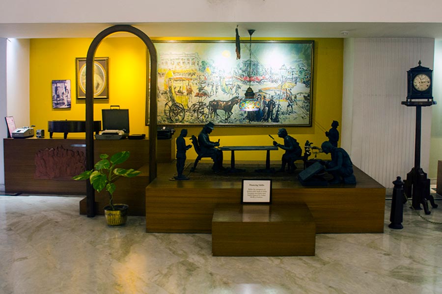 There are several other exhibits (in picture from left are statue of Prince Dwarkanath Tagore; bust of Lord William Bentinck and sketch of Mahatma Gandhi) narrating the history of the bank and its subsequent growth and modernisation. Everything is display with a series of photos, write-ups and even models (in picture below are models and paintings depicting the early days of banking).