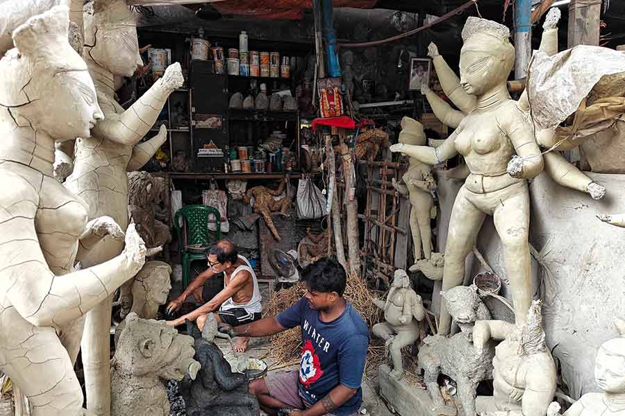 That means the city has a little over a month to get ready for its biggest festival, and the preparations in Kumartuli show that the countdown has truly begun.