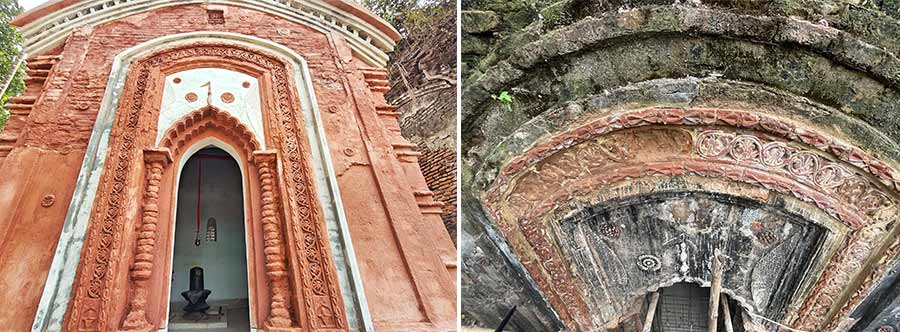 Situated in Paschim Nischintapur in Rajpur Sonarpur, the 19th-century structures are known for their terracotta surface detailing, a characteristic feature of temple architecture in the region.