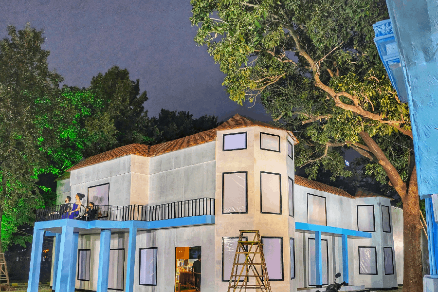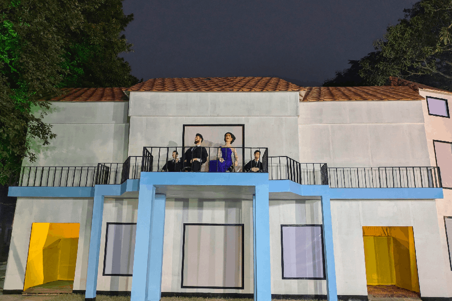 Life-size mannequins of Messi and family on the balcony complete the illusion of Miami in Kolkata.