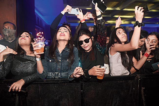 School friends Devika (left), Anya (centre) and Tanisha have been die-hard fans of Jubin for years. The three friends came to celebrate their friendship with an exciting live performance from their favourite artiste. They bonded over their love for Meherbani. “I did not want to leave. My favourite performance of the night was Tujhe kitna chahein aur. With all the crackers and fireworks, the vibes were amazing!” said Anya.