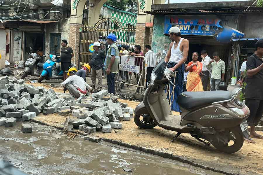 Repair and patchwork of the broken footpaths and pothole-ridden roads began over the weekend with an inspection a day after My Kolkata highlighted the miserable condition of the 1.8km stretch between Mominpur and Kidderpore on August 1.