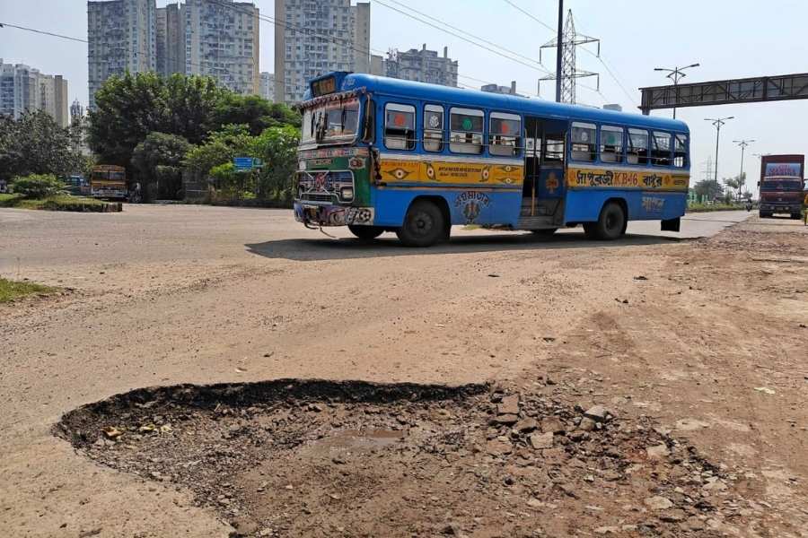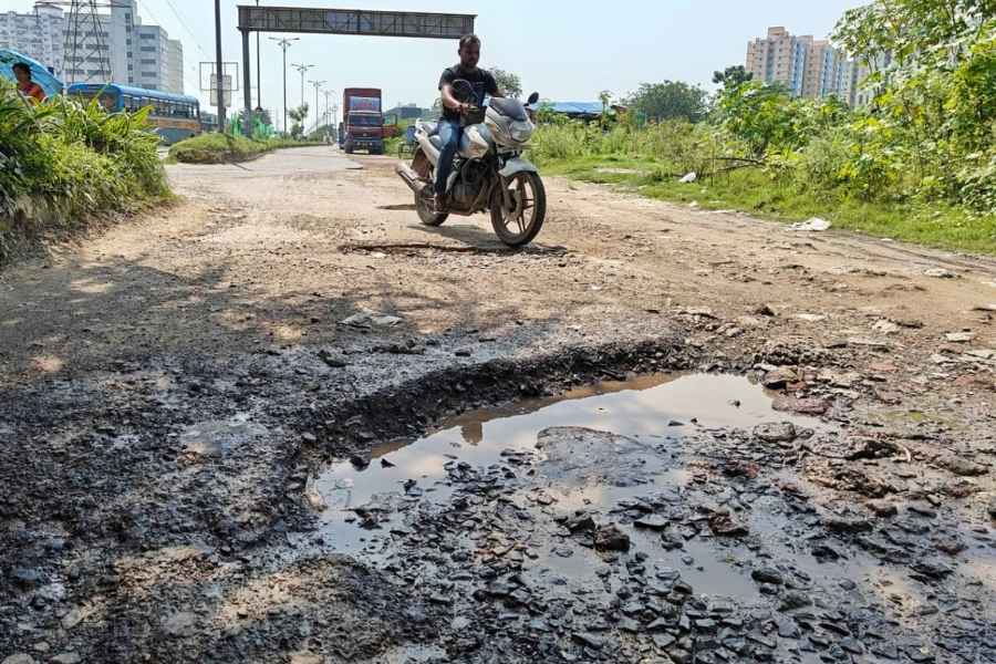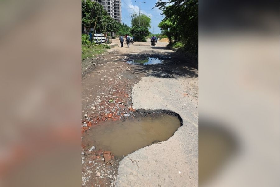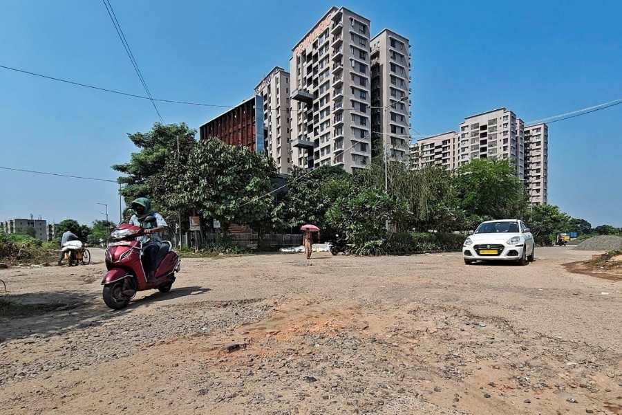 The road outside The Soul in New Town’s Action Area III, once a smooth, peaceful stretch, has turned into a disaster zone for the residents of the 700-odd flats inside the residential complex.