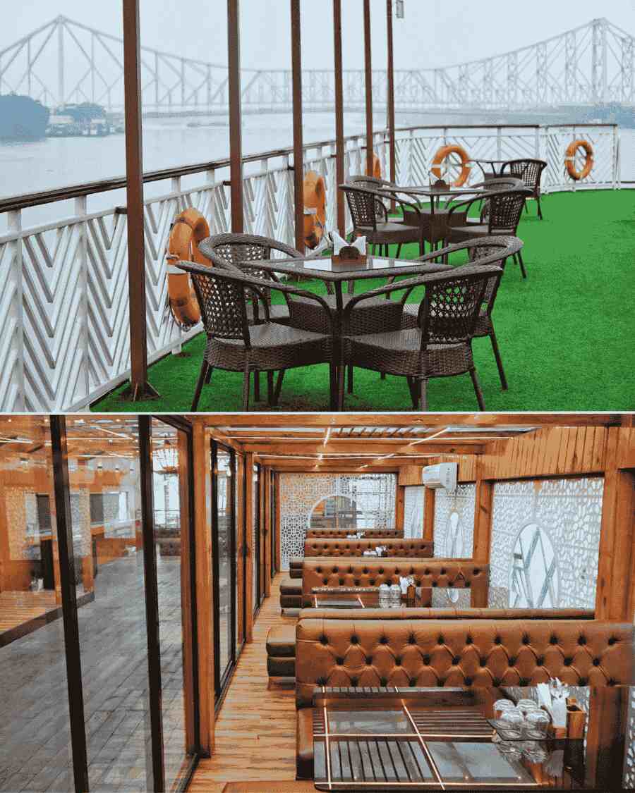 The Nautilus is a full-sized vessel. Seventy metres long and 13 metres wide, it is one of the largest floating hospitality spaces on the Hooghly. Guests reach the ship via a short speedboat feeder ride from Fairley Ghat (Ganges Queen 1, BBD Bag Railway Station Red Gate), which sets the tone even before you step inside.