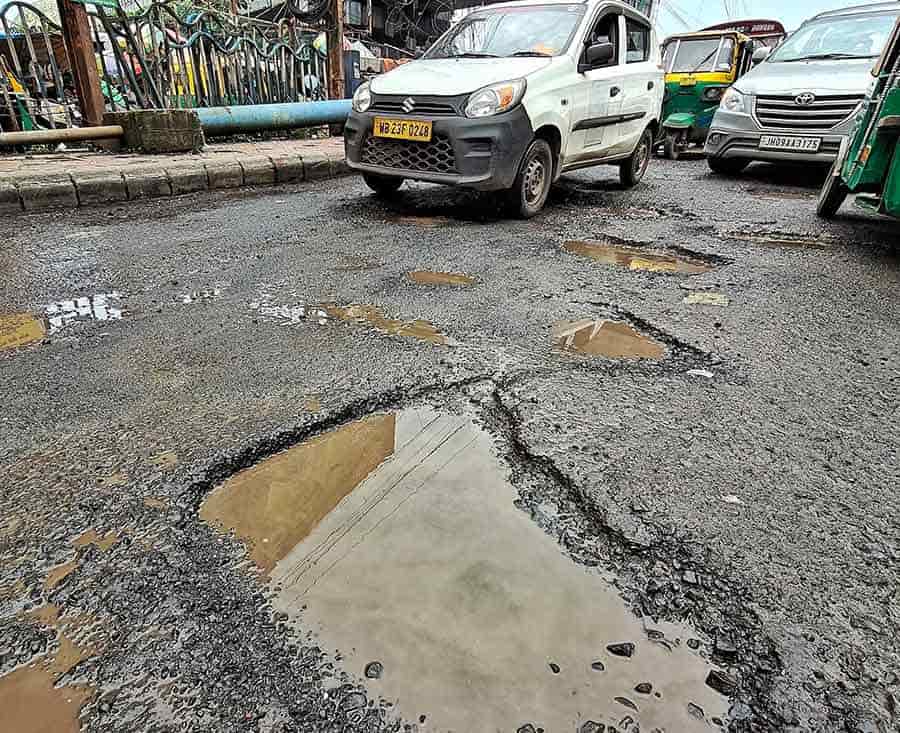 A surprise entry no one asked for! Just when the road appears smooth near Belgachia metro station, potholes make a dramatic entry — filled with intrigue, rain water and mud — ready to steal the spotlight.