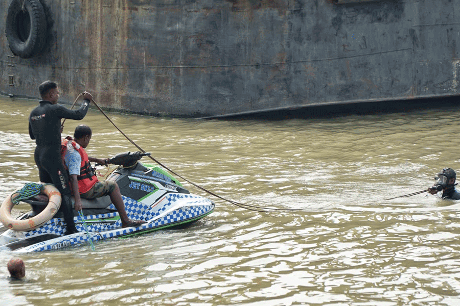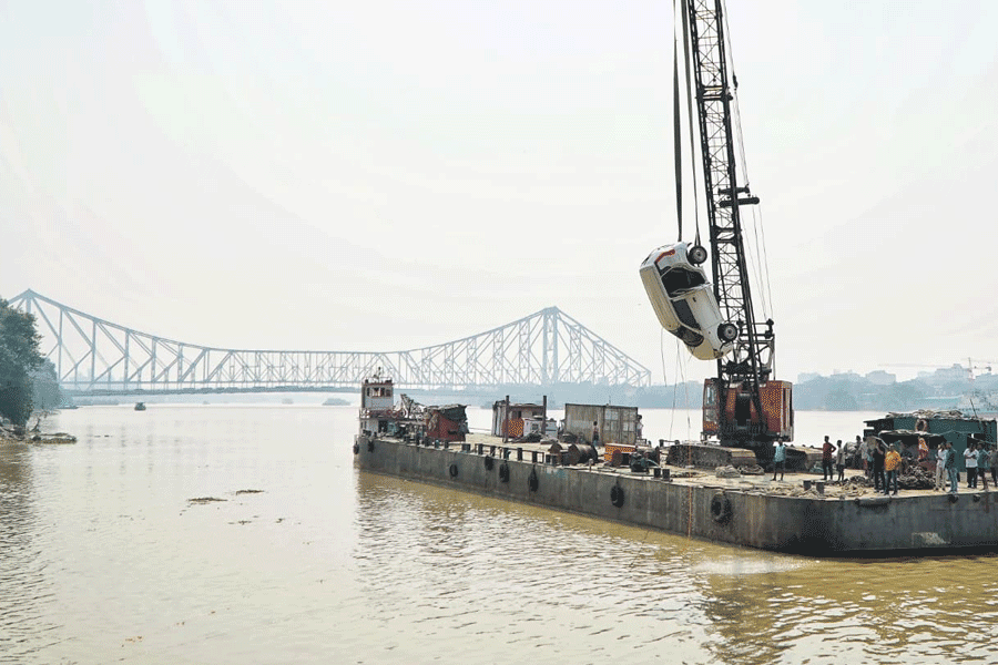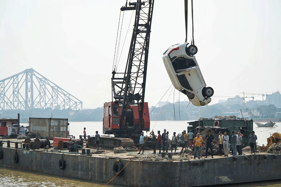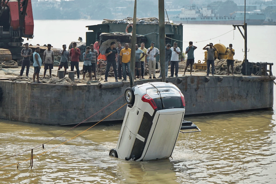 Nearby residents in the habit of taking a dip early morning at the Nimtala Ghat spotted the car in the middle of the river and alerted the traffic guard and the Jorebagan police station.