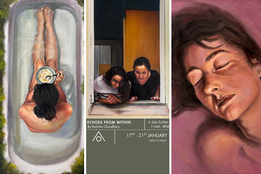 Kolkata’s creative weekend begins on an intimate note as The Red Bari opens its doors to ‘Echoes from Within’, the first solo exhibition by artist Ruchita Choudhary. The showcase brings together works drawn from a deeply personal space, presented publicly for the first time after living quietly in the artist’s studio.