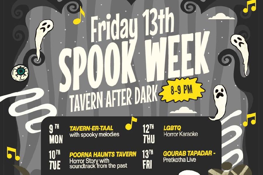 Tavern Behind Trincas is celebrating Friday the 13th right on the week of love. The venue will host a week-long spooky showcase of Bengali music, stories, and live performances from February 9-13, with programmes from 8-9pm each evening. The in-house band, Tavern’er Taal, will perform every night from 7.30–10.30pm.