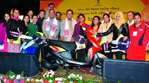 Guwahati: Assam chief minister Sarbananada Sonowal launched the distribution of 1,000 Scootys at a function at the GMCH auditorium here on Friday in a bid to accelerate women empowerment and acknowledge the good performance of the top 1,000 girls who excelled in the Higher Secondary School Leaving Certification Examinations, 2017.