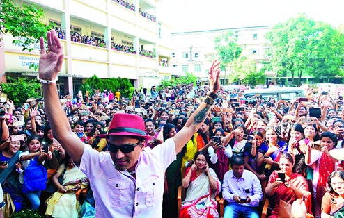 Singer Zubeen Garg during a promotion of Mission China at Handique Girls College in Guwahati